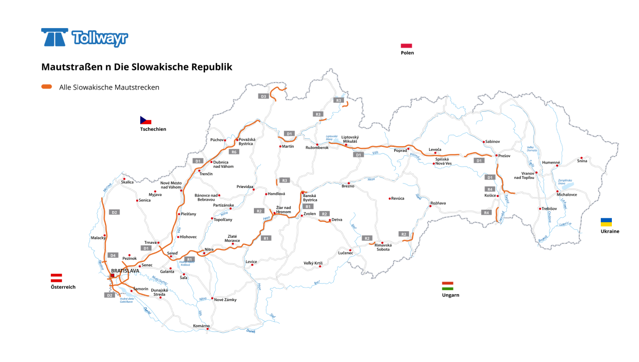 Szlovákiában négy fő autópálya van, amelyek mindegyike fizetős, többek között a következők:Ha Szlovákia szomszédos országaiban tervez utazni, mindenképpen tájékozódjon az útdíjrendszerükre vonatkozó legfrissebb információkról, hogy elkerülje az esetleges bírságokat és büntetéseket.