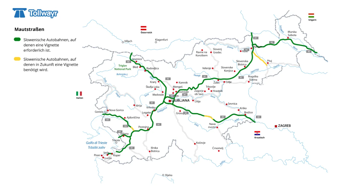Consulta qui sotto una mappa interattiva della Slovenia che indica tutte le strade principali che richiedono la vignette.